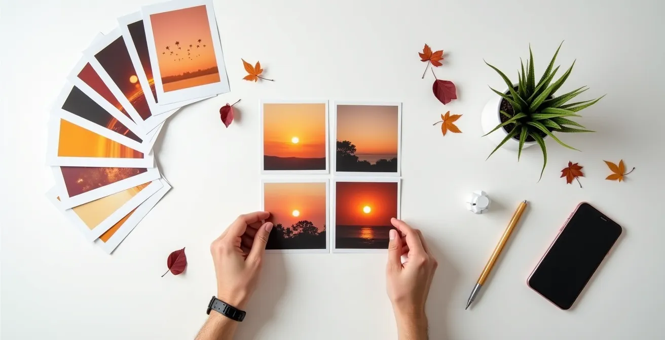 Instead of planning post by post, you should organize your shot list by prop combinations and lighting setups. For example, you would shoot all photos featuring a specific ceramic vase and linen backdrop at the same time, simply swapping out other small elements. This ensures absolute consistency in lighting and mood. A powerful framework for this is the Five-Shot Story, which ensures you capture a variety of compositions for each “scene”: a hero shot, a detail shot, a human element shot (e.g., a hand interacting with the product), an in-context shot, and a flat lay. This method guarantees you have a diverse yet harmonious set of assets to pull from.